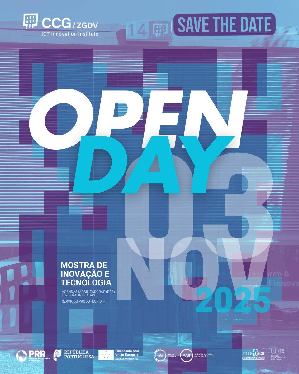 O Open Day do CCG/ZGDV é uma oportunidade única para conhecer de perto projetos e soluções tecnológicas que estão a transformar a indústria e a sociedade, no âmbito das Agendas Mobilizadoras do PRR – Recuperar Portugal e da Missão Interface. O evento reúne entidades governativas, representantes europeus, parceiros industriais e académicos num momento de reflexão, demonstração e celebração da inovação tecnológica.