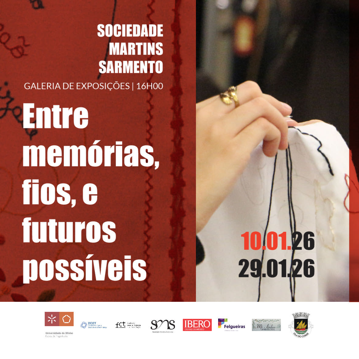 A Sociedade Martins Sarmento, em Guimarães, tem patente de 10 a 29 de janeiro a exposição "Entre Memórias, Fios e Futuros Possíveis". A iniciativa é coordenada por Fernanda Enéia Schulz, investigadora da Escola de Engenharia da UMinho, no âmbito do projeto de doutoramento “Design in the feminine: knowledge, textile and fashion design”, sob a orientação da professora Joana Cunha no Centro de Ciência e Tecnologia Têxtil (2C2T) da UMinho e em parceria com a Universidad IBERO, do México.